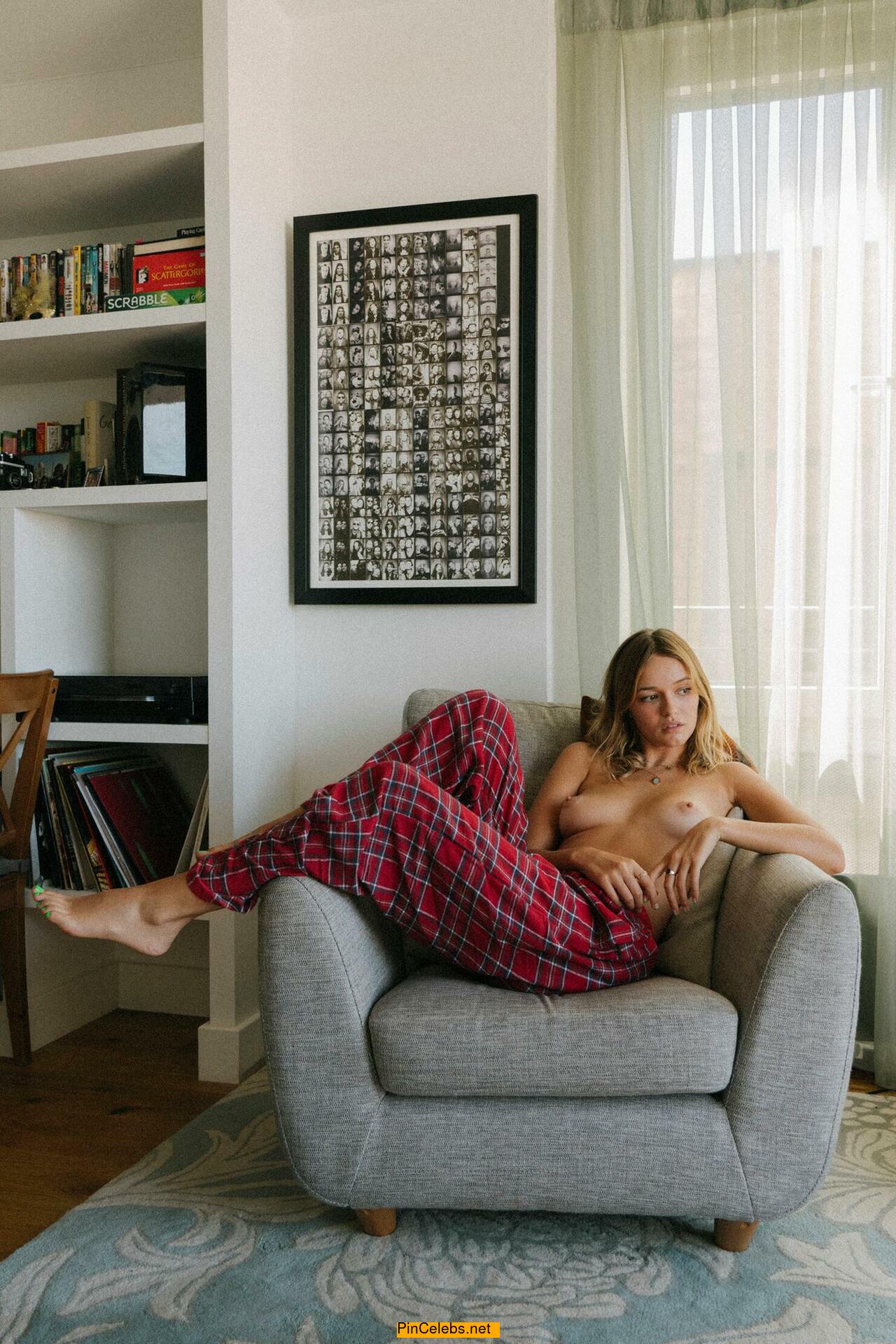 Maddy Elmer topless in an armchair by Sam Livm
