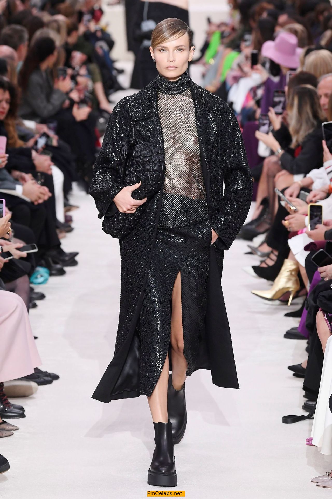 Natasha Poly in see through top walks runway at Valentino Show at Paris Fashion Week in Paris