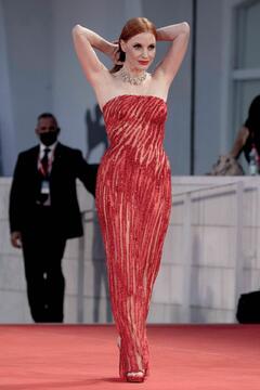 Jessica Chastain at premiere for Competencia Oficial at the 78th Venice Film Festival